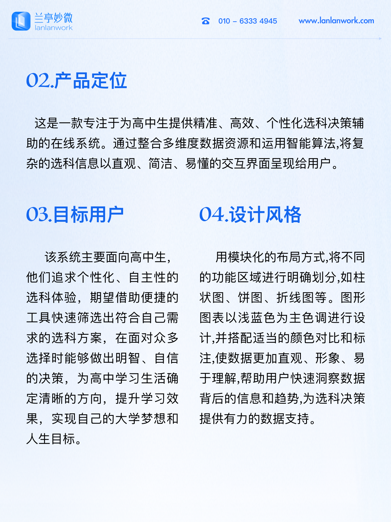 蘭亭妙微(藍藍設計)m.skdbbs.com 是一家專注而深入的界面設計公司,為期望卓越的國內外企業提供卓越的大數據可視化界面設計、B端界面設計桌面端界面設計、APP界面設計、圖標定制、用戶體驗設計交互設計、UI咨詢高端網站設計、平面設計,以及相關的軟件開發服務,咨詢電話:01063334945。