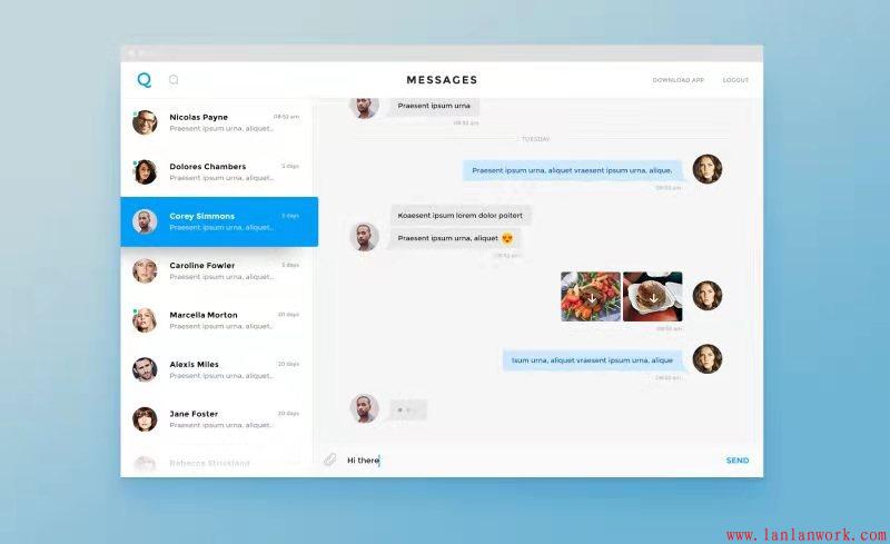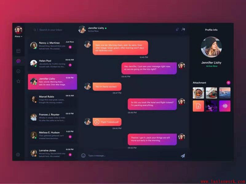 即時通訊界面設計 表達其物流行業的專業性和商務性,標識整體精致細膩,令人印象深刻,在界面設計時以厚重,大氣的配色方案和視覺風格提升整個品牌的含義。