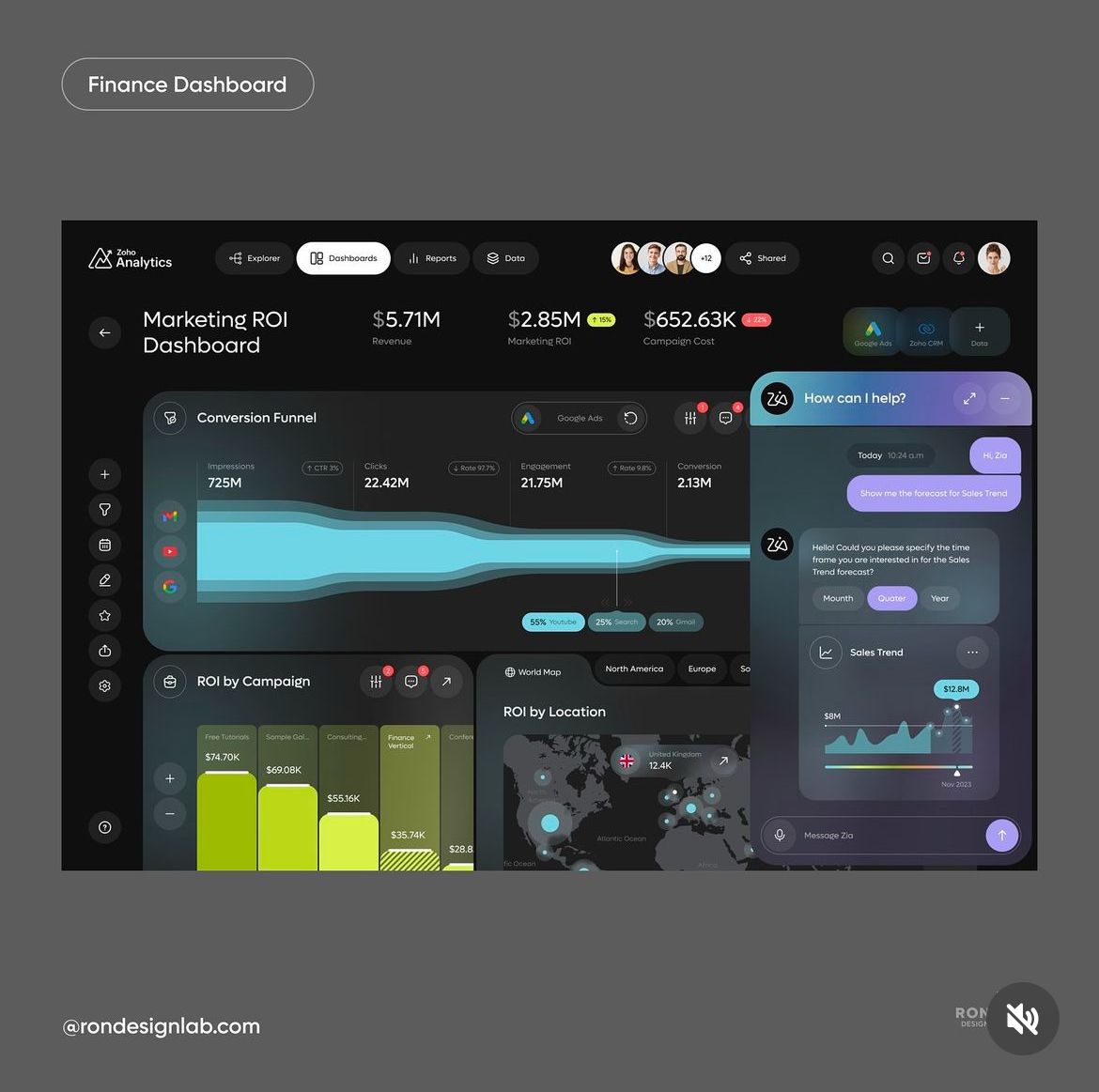 企業數據往往枯燥且復雜,而這類設計卻讓數據 “活” 了起來。深色背景與熒光色、科技藍的碰撞,既拉滿科技氛圍,又通過色彩區分數據維度,讓層級一目了然。環形圖、折線圖等可視化組件,把營收、用戶增長等數據動態展示,仿佛數據在 “講述” 企業故事。這讓我們思考:數據類 UI 不該只是 “數據的容器”,更應是 “數據的翻譯官”,蘭亭妙微在做類似設計時,也會努力讓專業數據變得更易感知、更能輔助決策。