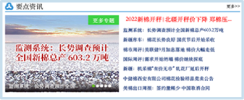 中國棉花網是中儲棉花信息中心直屬網站,作為中國棉花行業最具影響力的垂直門戶網站之一,中國棉花網始終秉承準確、及時、全面、權威的服務宗旨,以服務國家宏觀調控、服務廣大會員、服務涉棉企業為指導思想,開拓創新,迅猛發展,提供有效的,專業權威的棉花相關訊息。 鑒于原網站界面老化,關鍵信息呈遞雜亂無章,致使用戶讀取困難,決定改版網站www.cncotton.com。